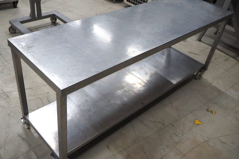 Ref.: 124 - Mesa móvil de acero inóxidable con balda y ruedas
