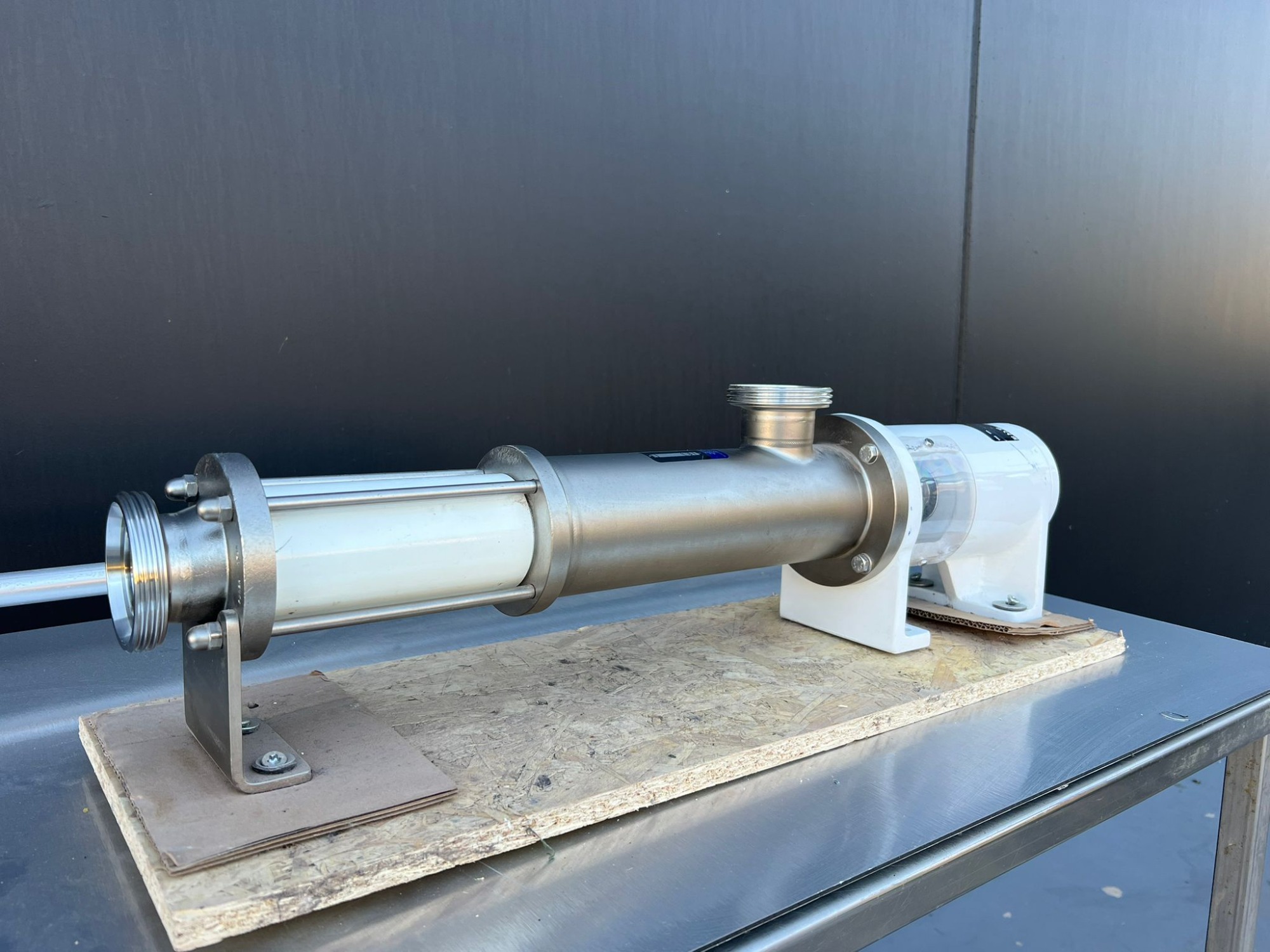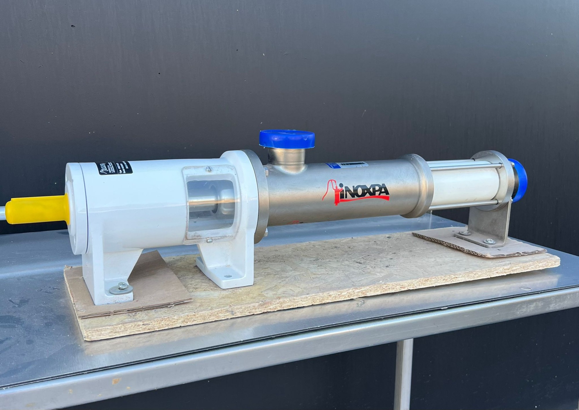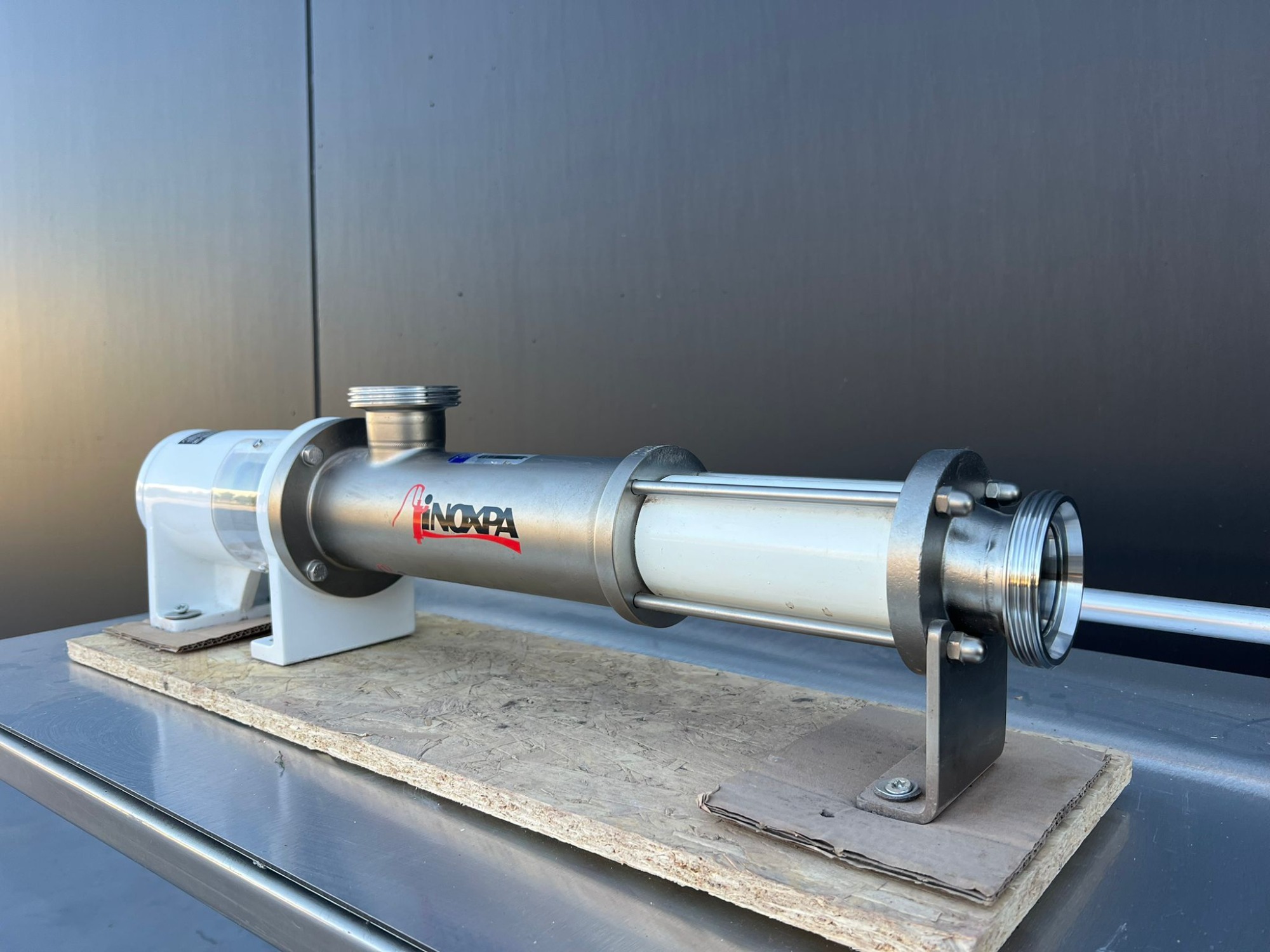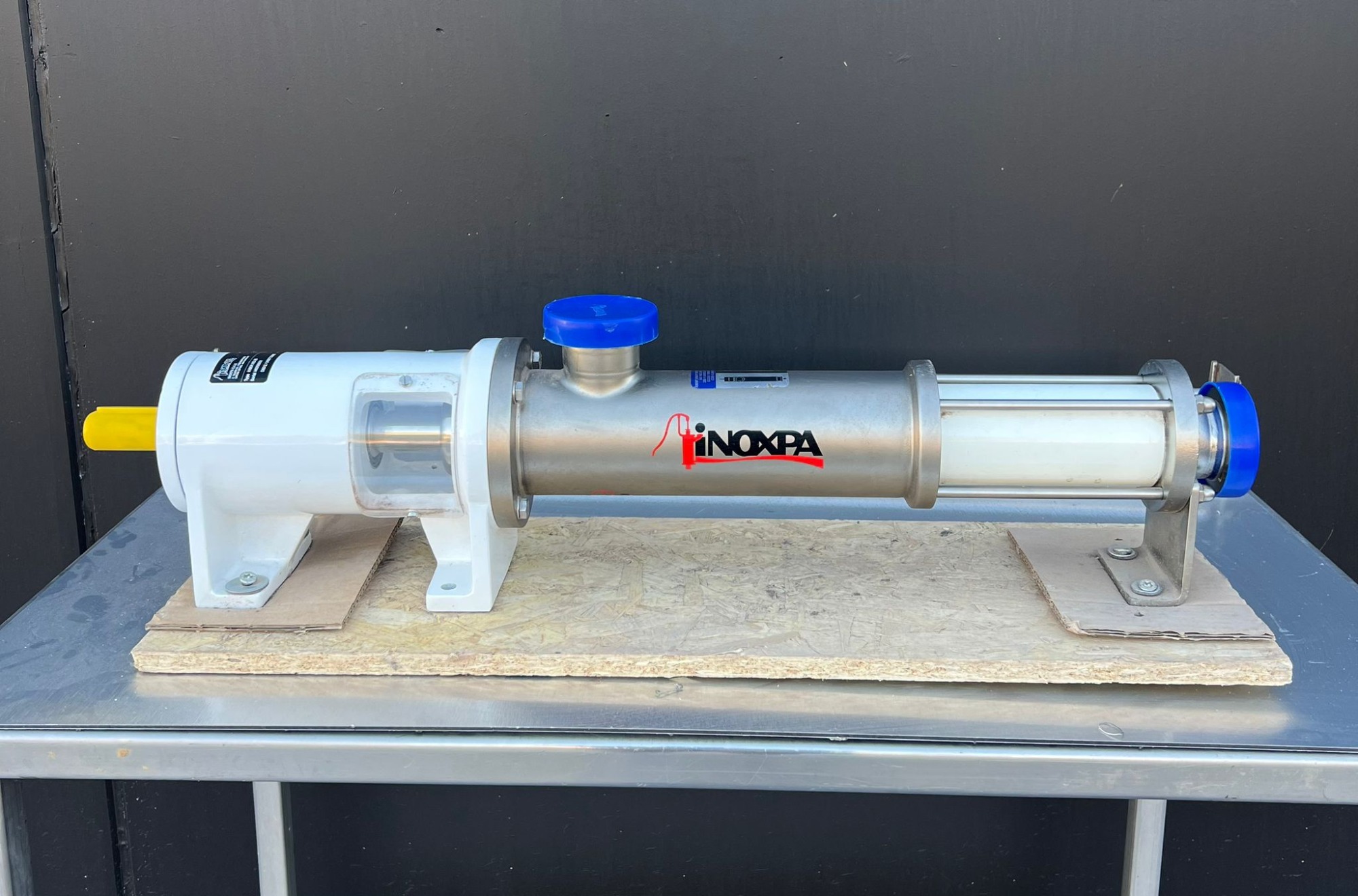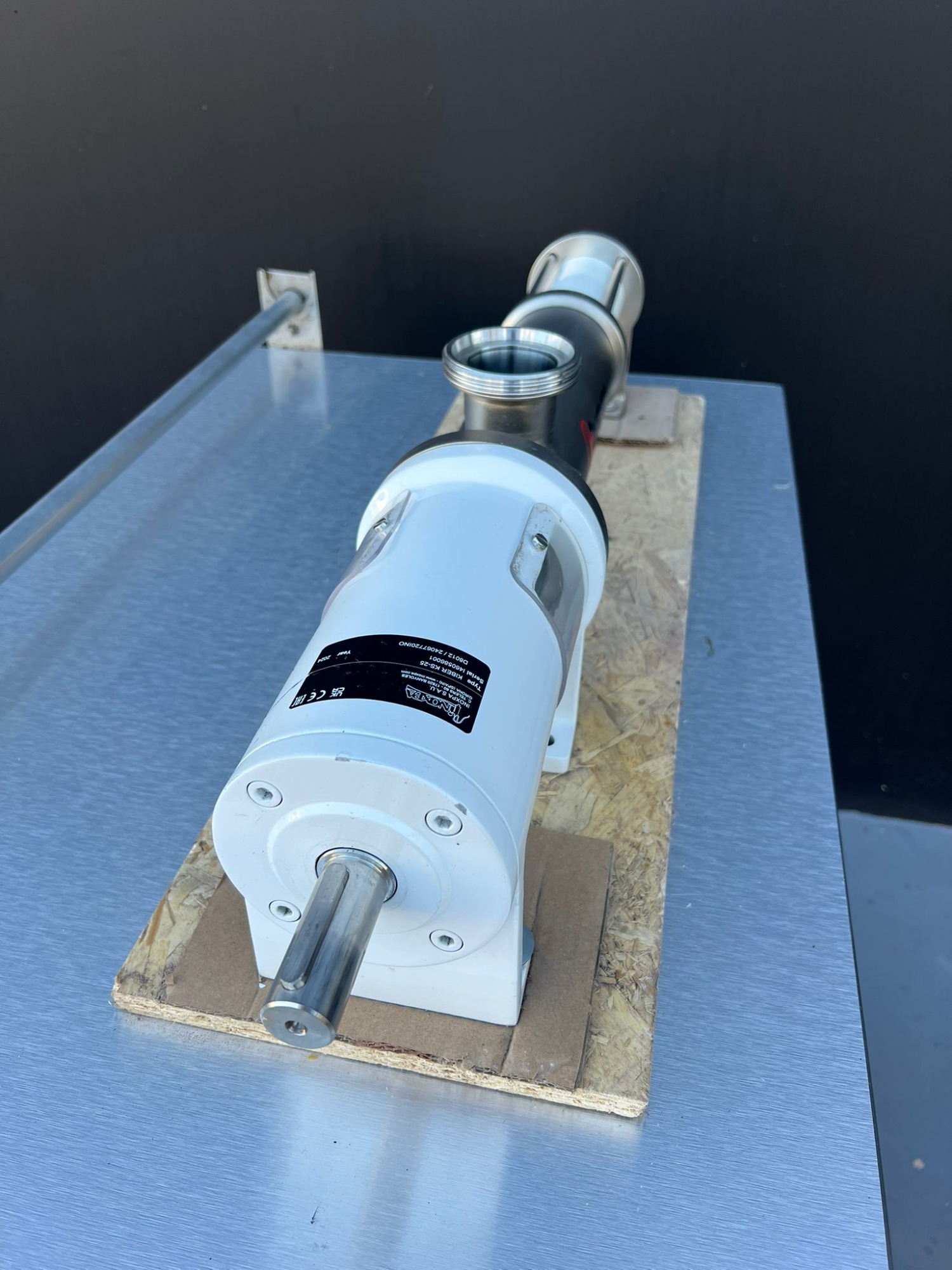 Bomba Helicoidal Inoxpa Bomba tipo mono Año: 2024 Type: KIBER KS-25 D8012/2406772IN Eje: 25 mm Entrada y sulada: 2 pulgadas 50 mm Rosca de 75 mm Dimensions totales: 820x150×200 mm Cuerpo bomba: 450 mm Diámetro:100 mm