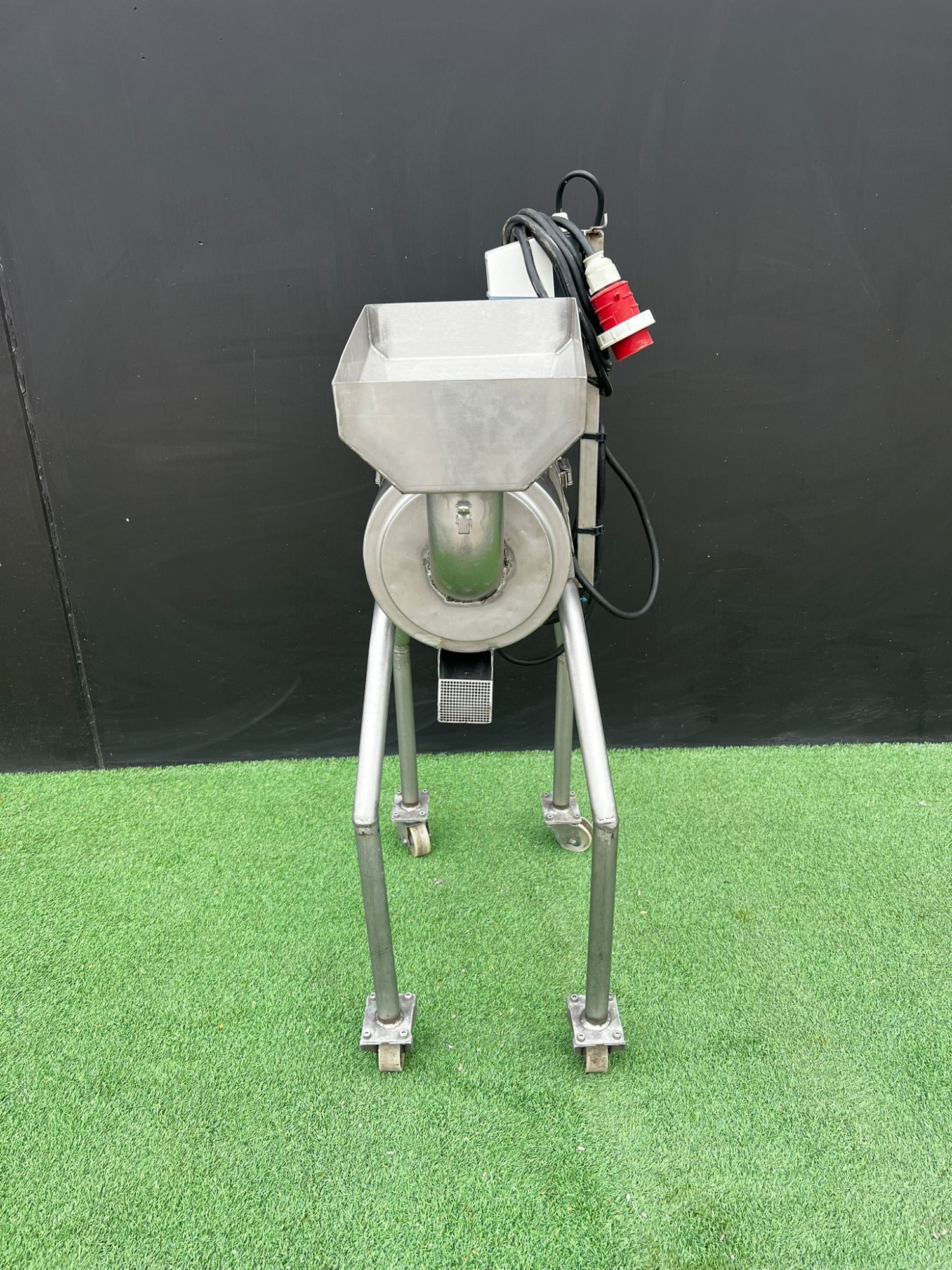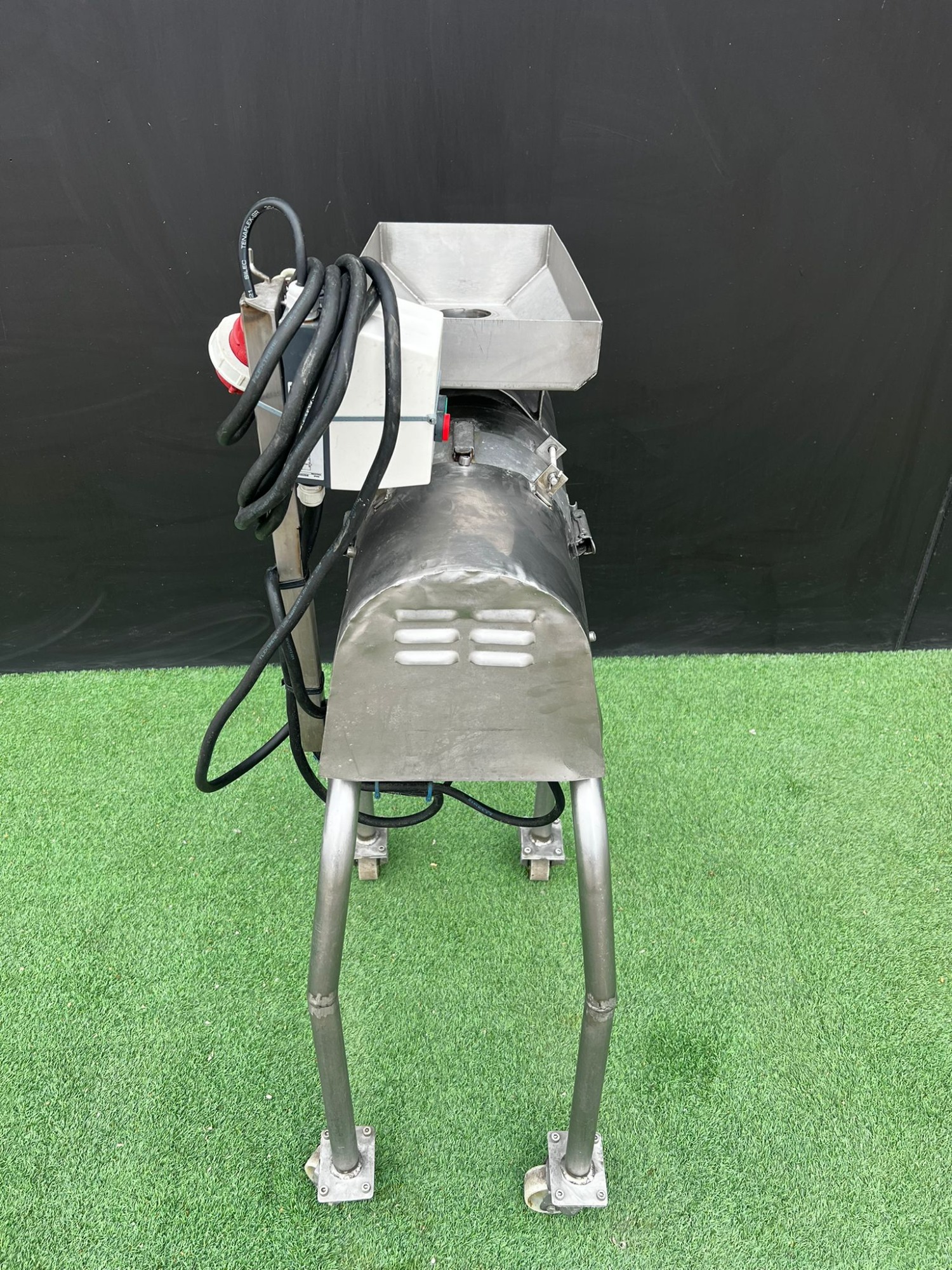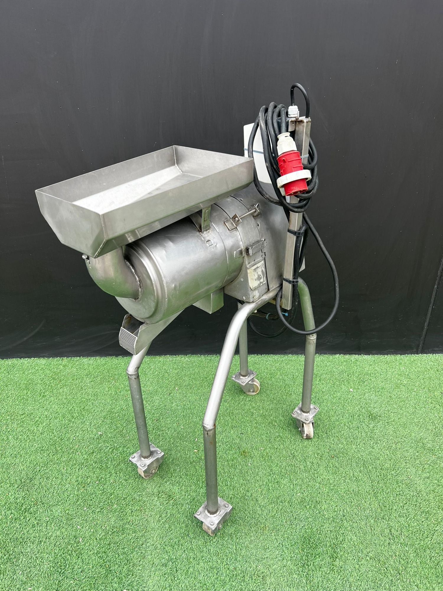 Tamizadora Robot Coupe C200 de acero inoxidable. Producción: 150 kg/h Potencia: 1800 w Trifásico 400 V Tamiz con perforaciones de 1 mm y 3 mm - Incluido Dimensiones: 900x400x1200mm Colador automático de tamiz para realizar pulpas de frutas mousses de hortalizas, fondos de salsa, bisques, sopas de pescado, etc... separando las semillas, huesos, fibras y carcasas sin triturarlos. La introducción de ingredientes de manera continua facilita su uso y permite ganar un tiempo considerable para proponer preparaciones caseras.