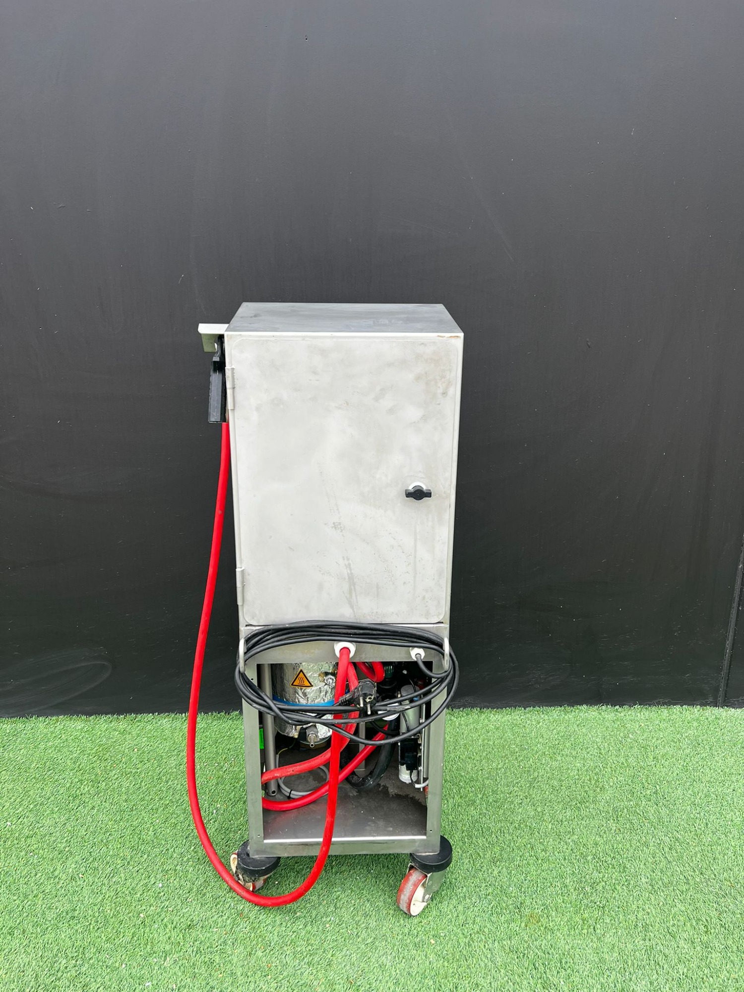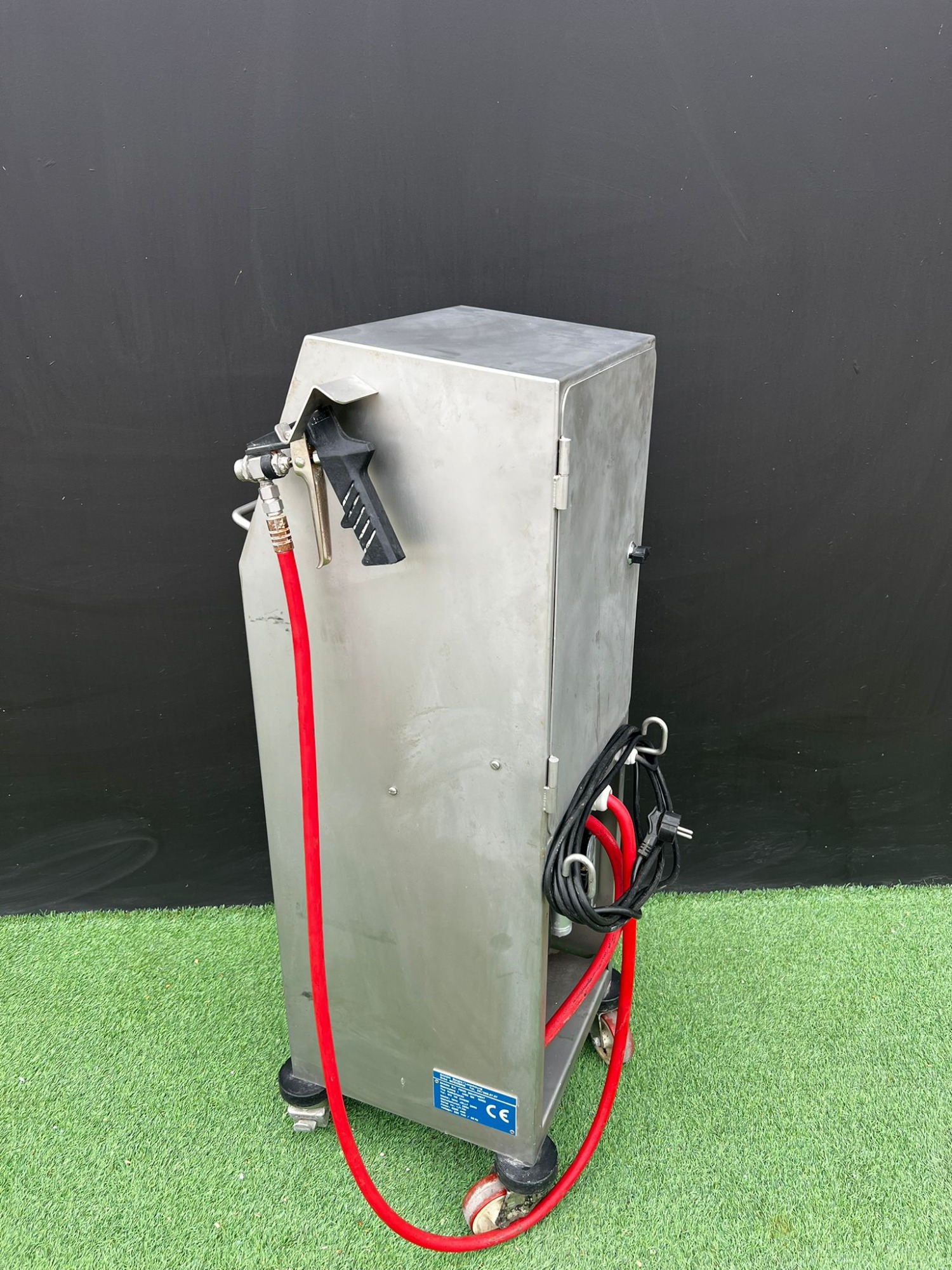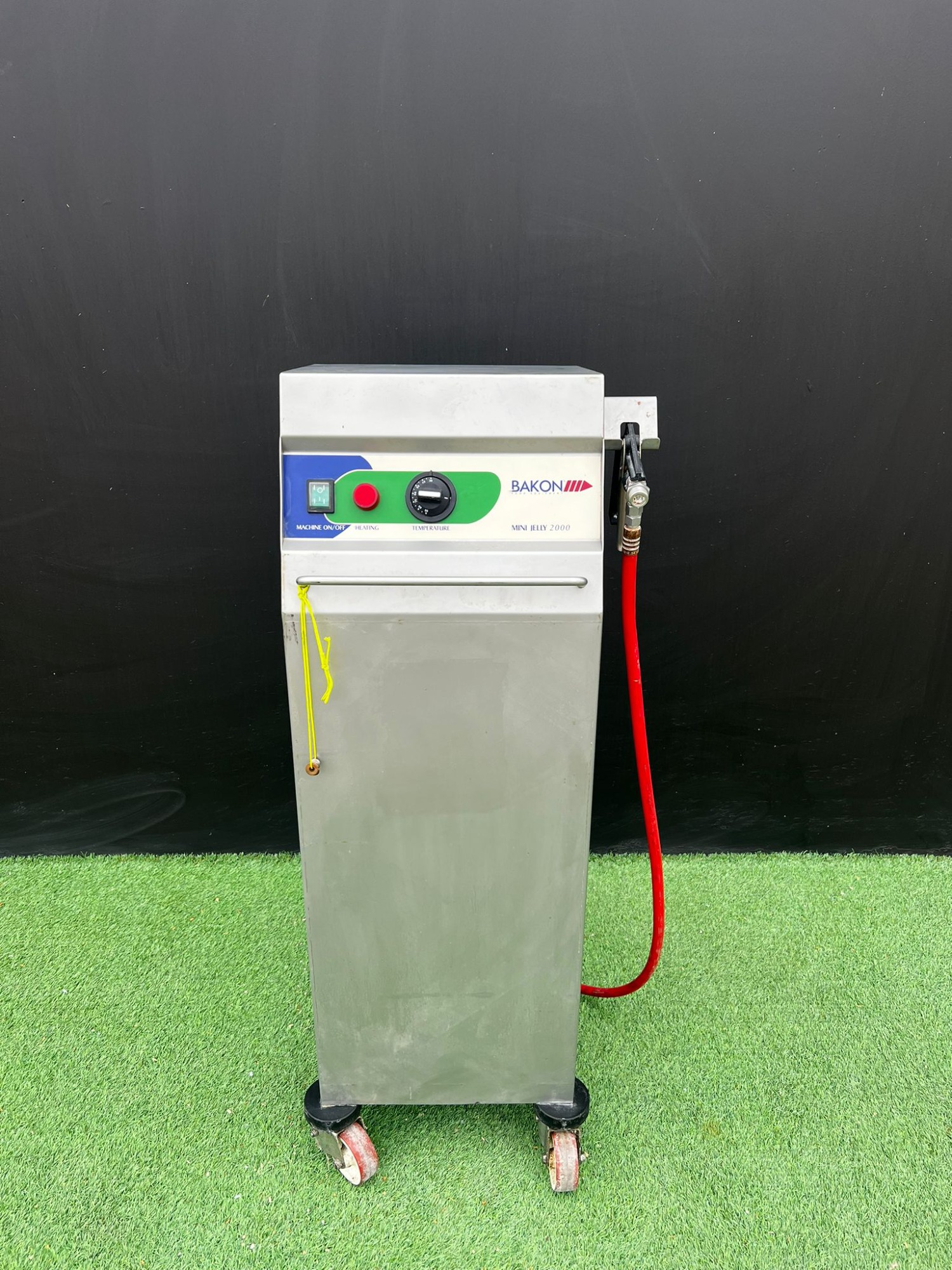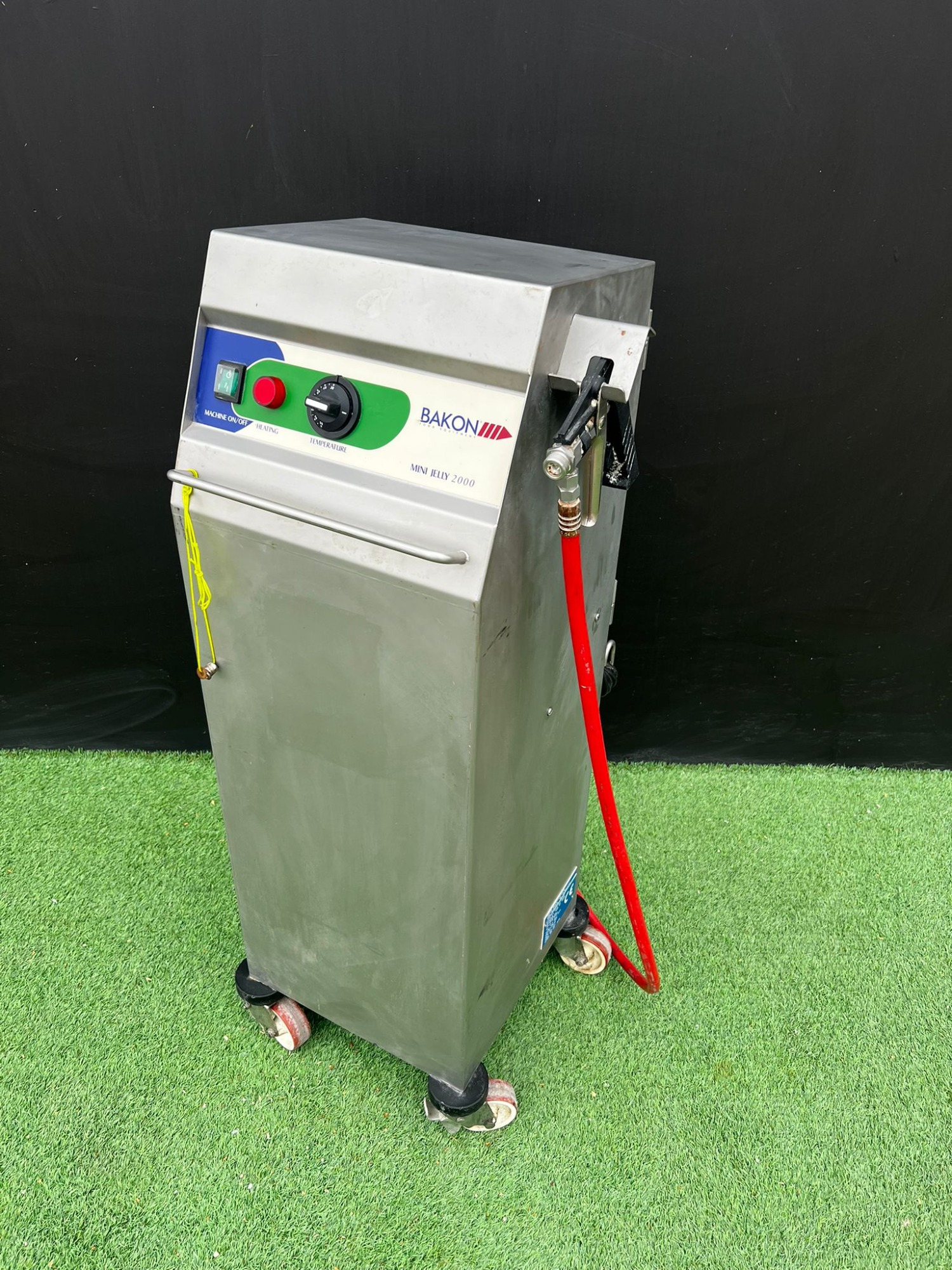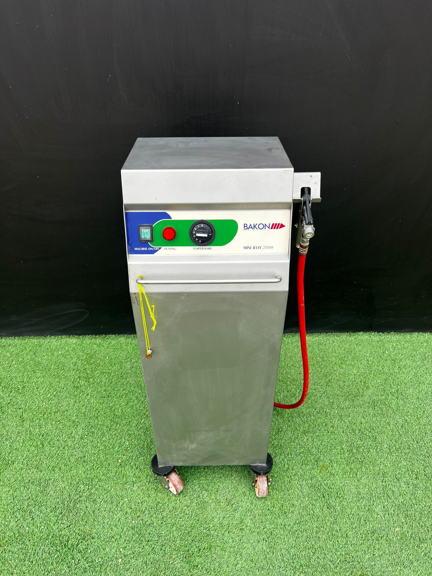 - Dimensiones: 420x400x1060mm - Modelo: MINI JELLY 2000. - Construcción en acero inoxidable. - Panel de control con interruptor y regulador. - Manguera con pistola pulverizadora. - Base con ruedas para fácil movilidad.