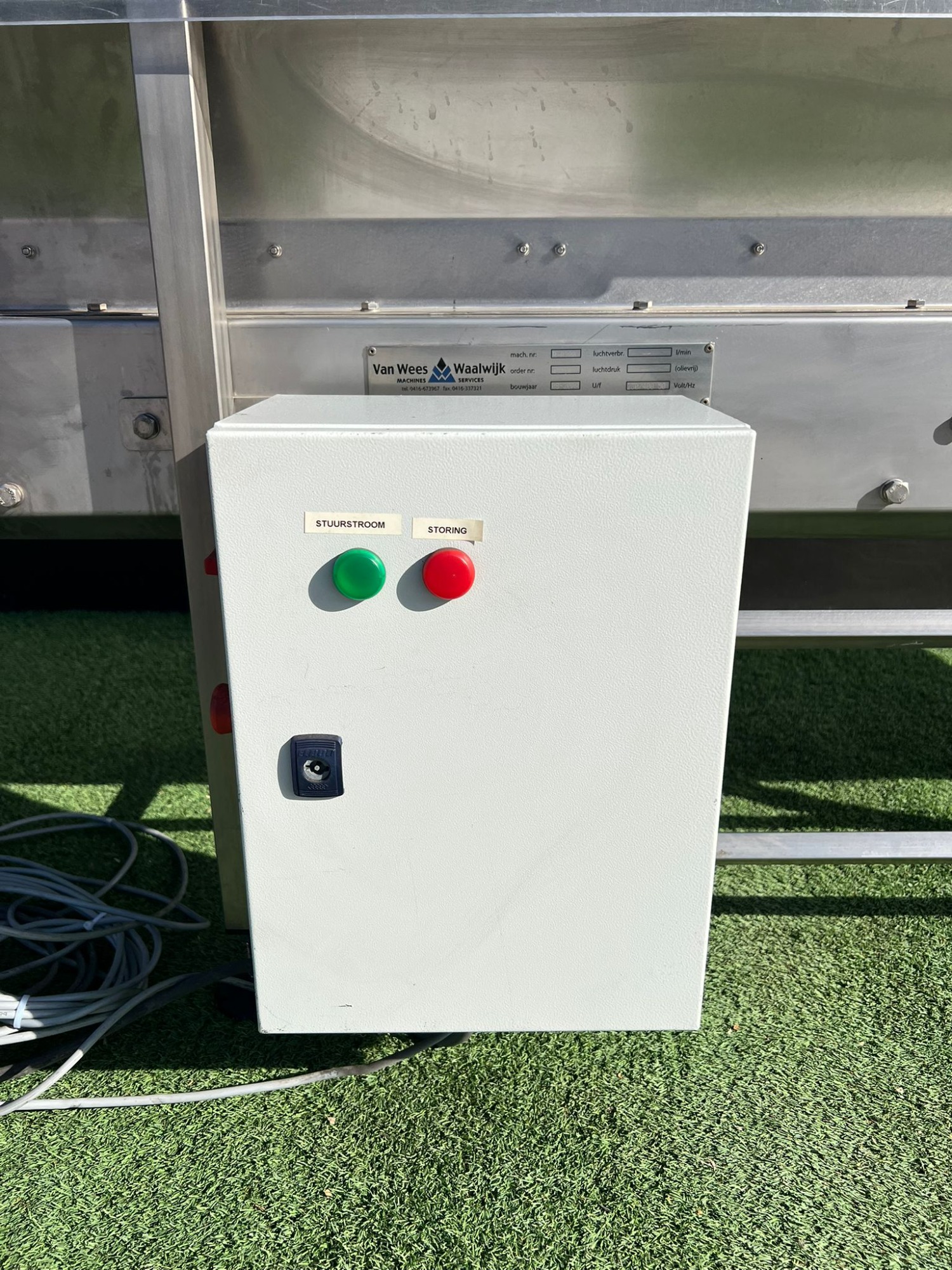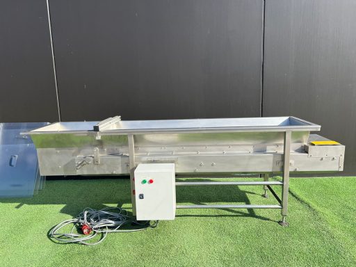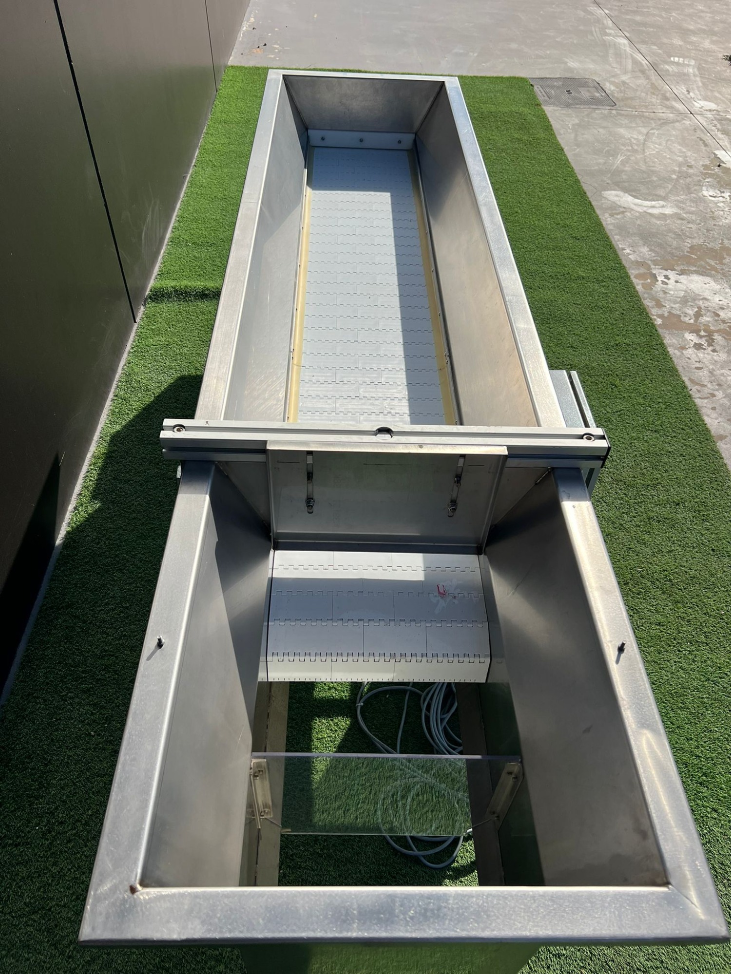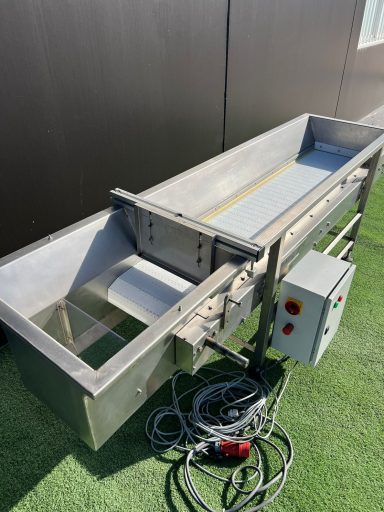 Banda transportadora Hinderink Lalobuba B-0200 de acero inoxidable, 2008 Dimensiones de la banda: L: 1900 Dimensiones totales: L: 2660 Número de serie: 43710 Marca: Hinderink Lalobuba Dimensiones de la banda: A: 350 Dimensiones totales: Ancho: 840 Peso neto: 200 Año de fabricación: 2008 Dimensiones totales: Alto: 960 Tipo: B-0200 Equipada con banda de eslabones de plástico y tapas de plexiglás